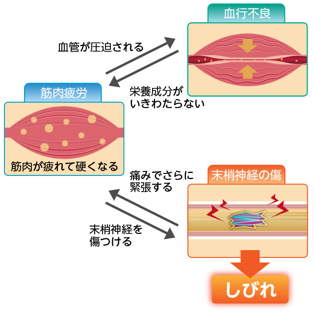硬直すると血行が悪くなり、